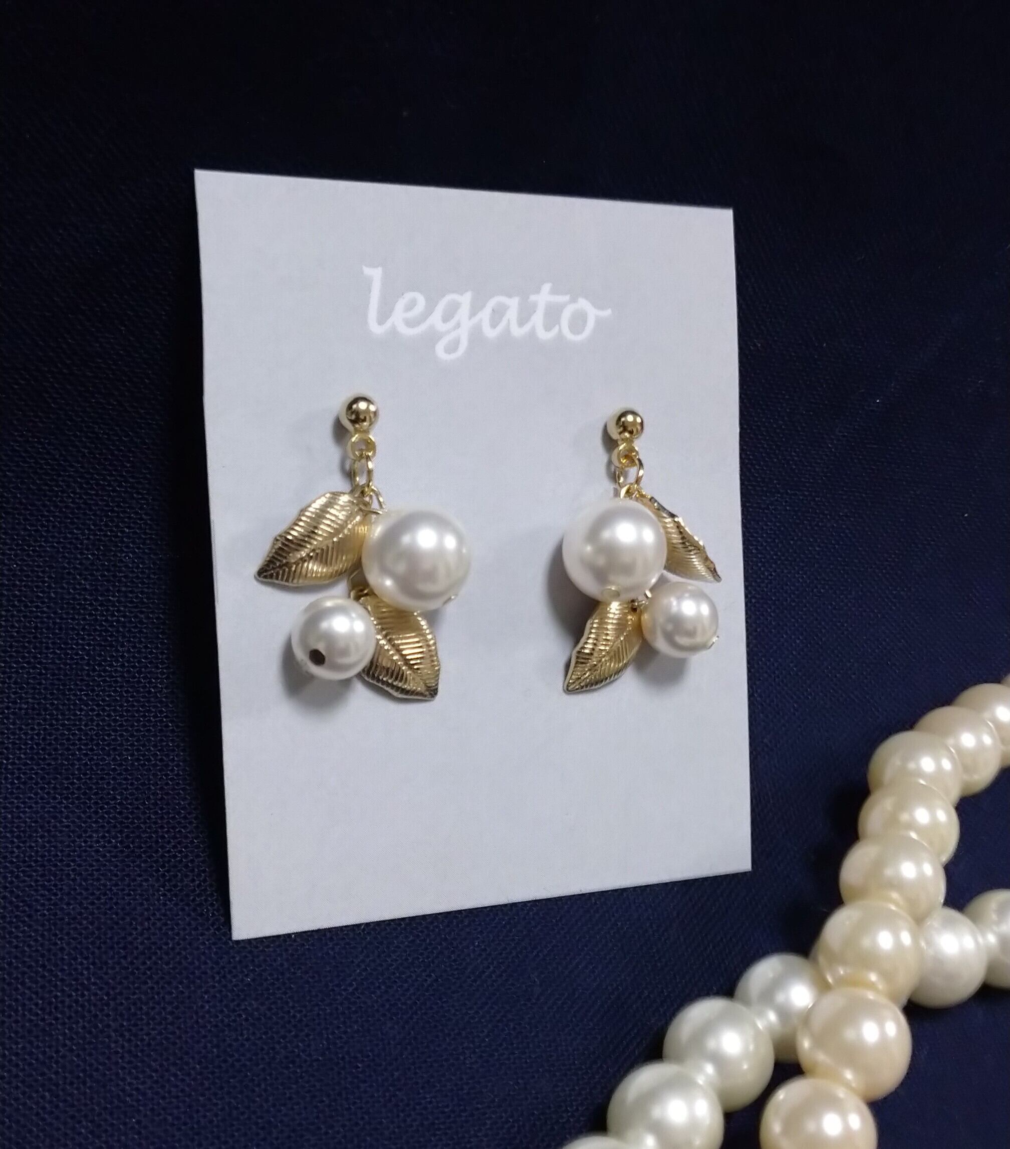 リーフパーツと大きさの異なるパールを組み合わせました。