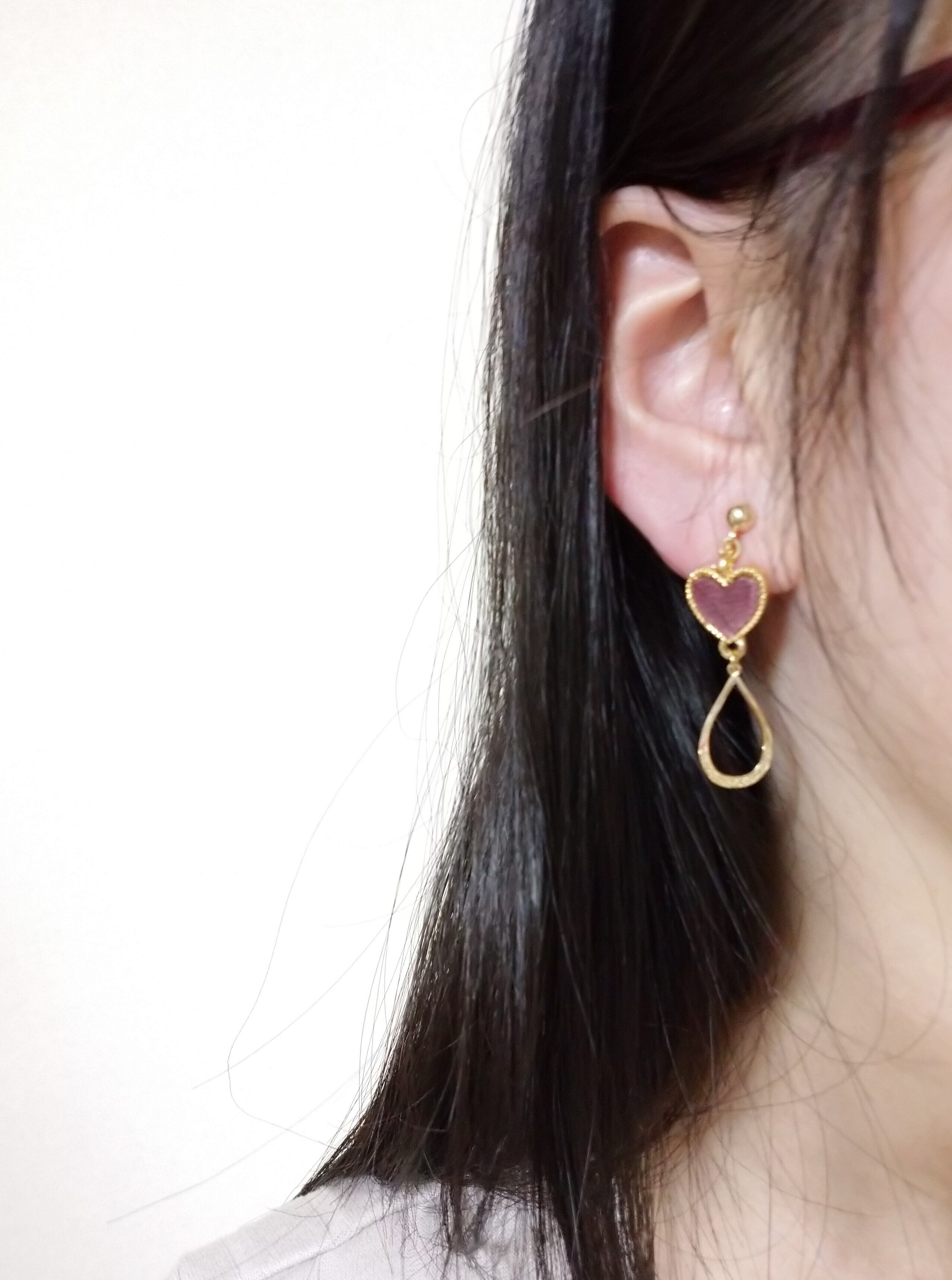 暗めのピンクなので可愛くなりすぎないアクセサリー。