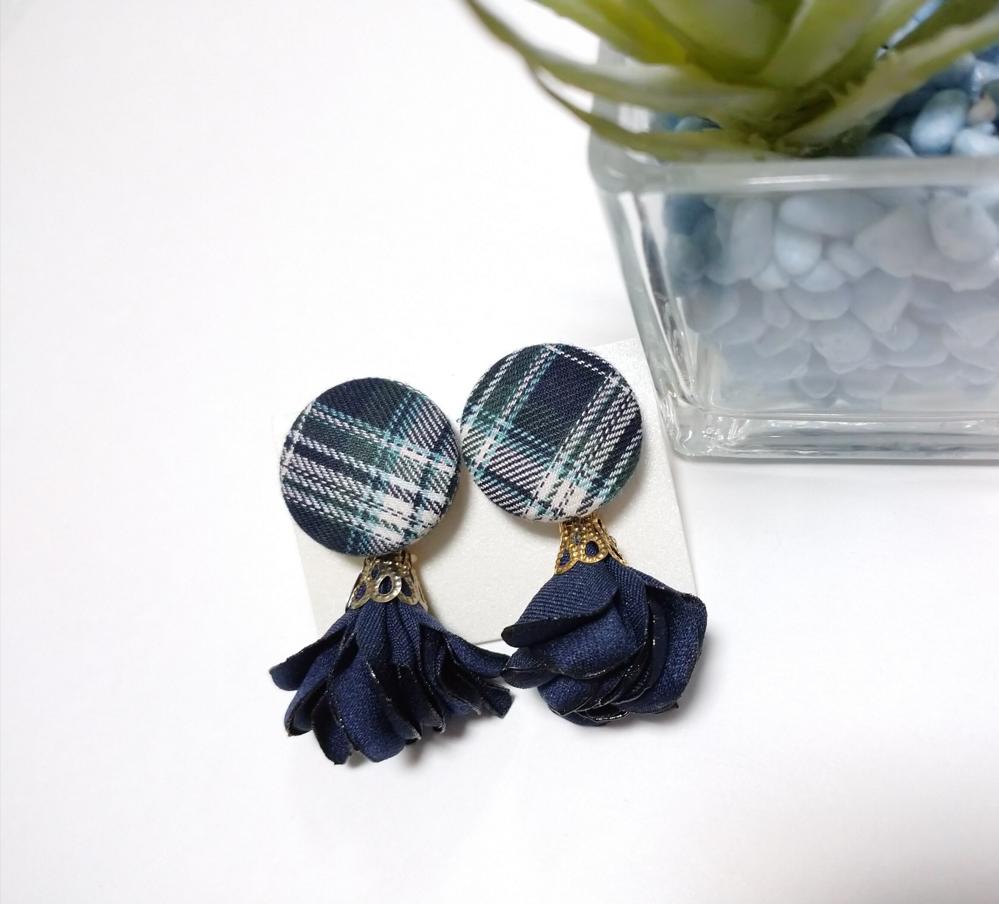 チェック柄イヤリング(ネイビー)