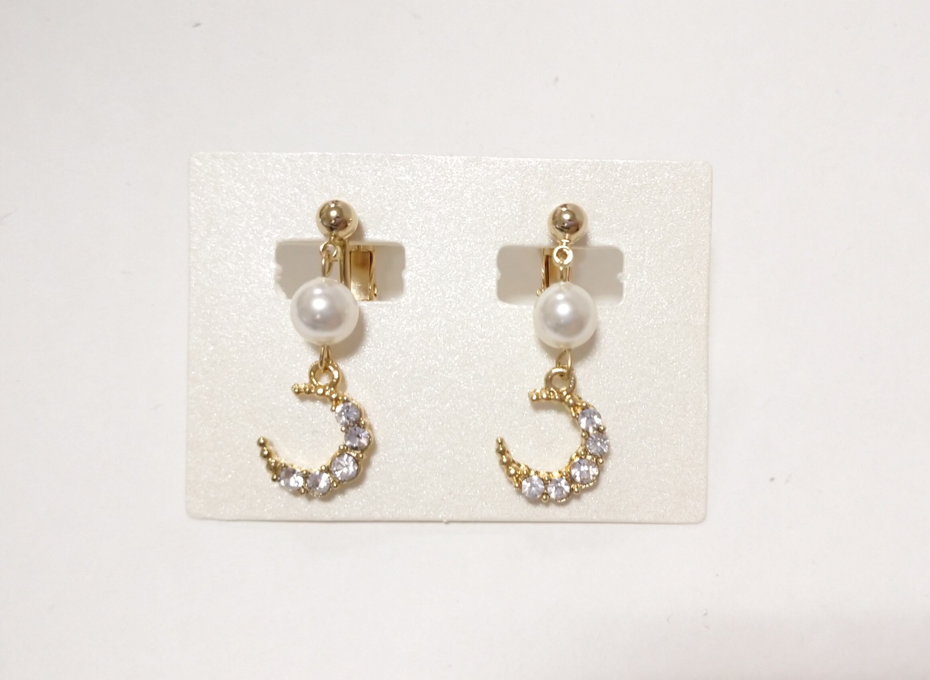 お月様のキラキラピアス/イヤリング/樹脂ノンホールピアス