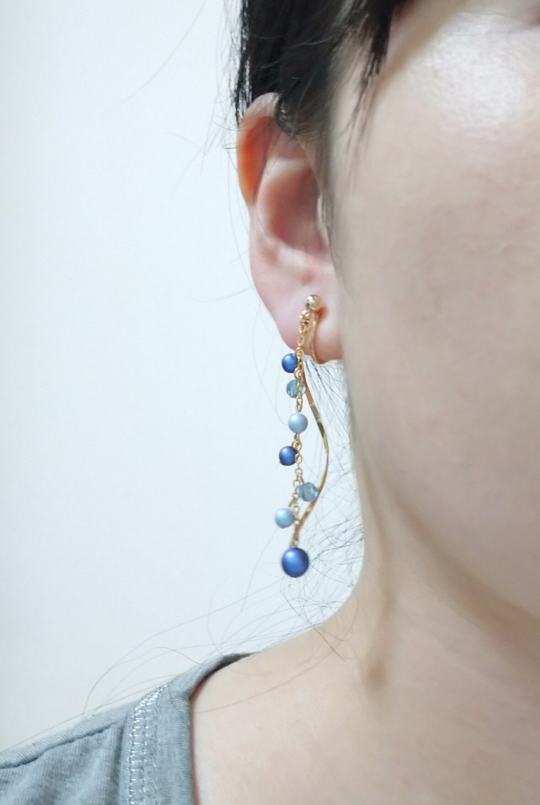 ブルー×ゴールドのピアス/イヤリング/樹脂ノンホールピアス
