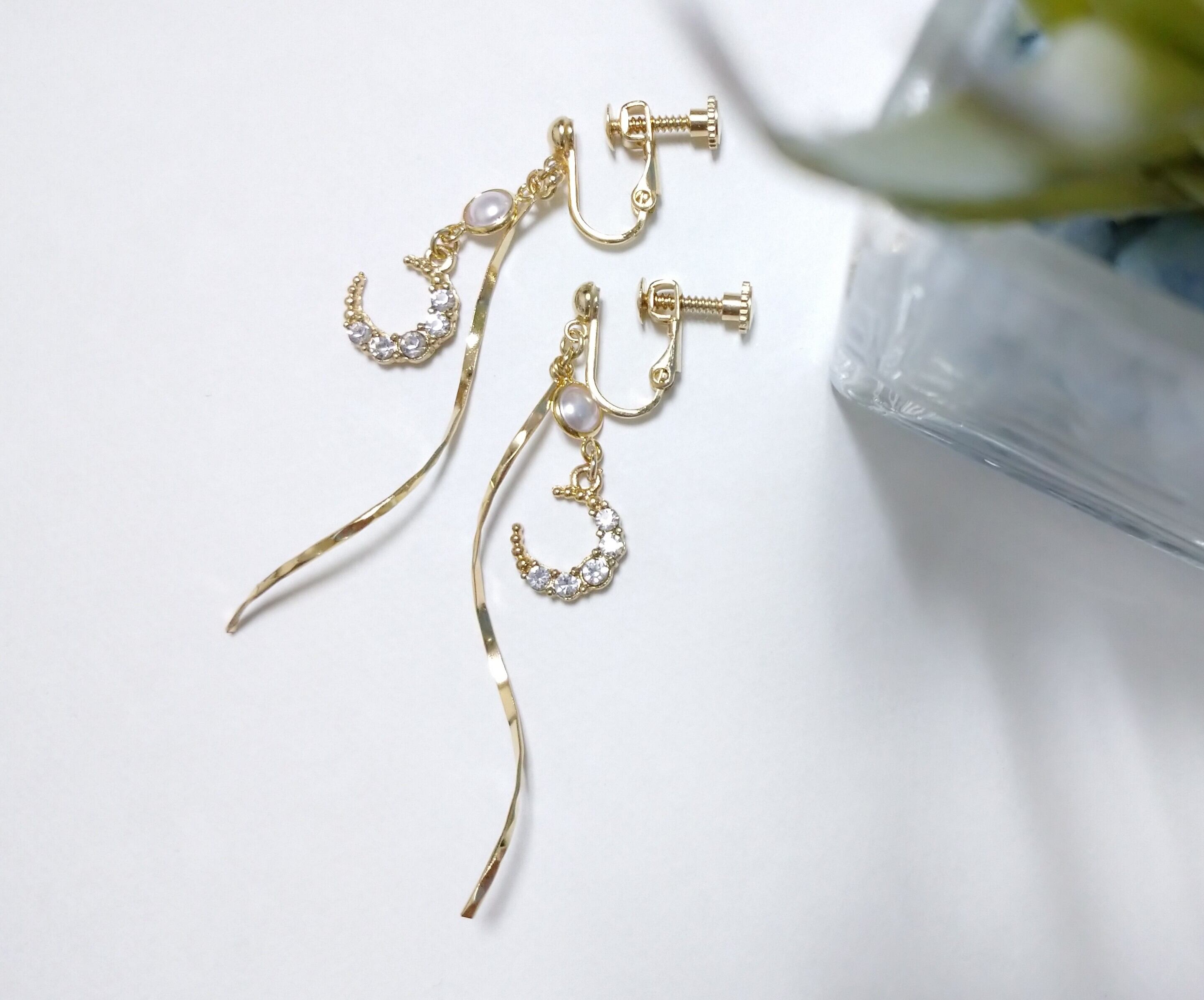 こちらは月をモチーフにしたパーツとツイストパーツを繋げたアクセサリーです。